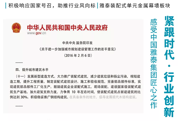 作為雅泰裝配式單元金屬幕墻筑造史上的又一里程碑事件,該項目著重強調(diào)了雅泰在金屬復(fù)合材料領(lǐng)域的開放屬性,以及對其生產(chǎn)工藝水平不斷提升、自我超越的承諾。此次項目的順利落成,不僅代表著雅泰在裝配式單元金屬幕墻板塊領(lǐng)域的又一進步,更見證了中外以經(jīng)濟全球化為核心,以建筑文化相融為紐帶,不斷深化的國際友誼。