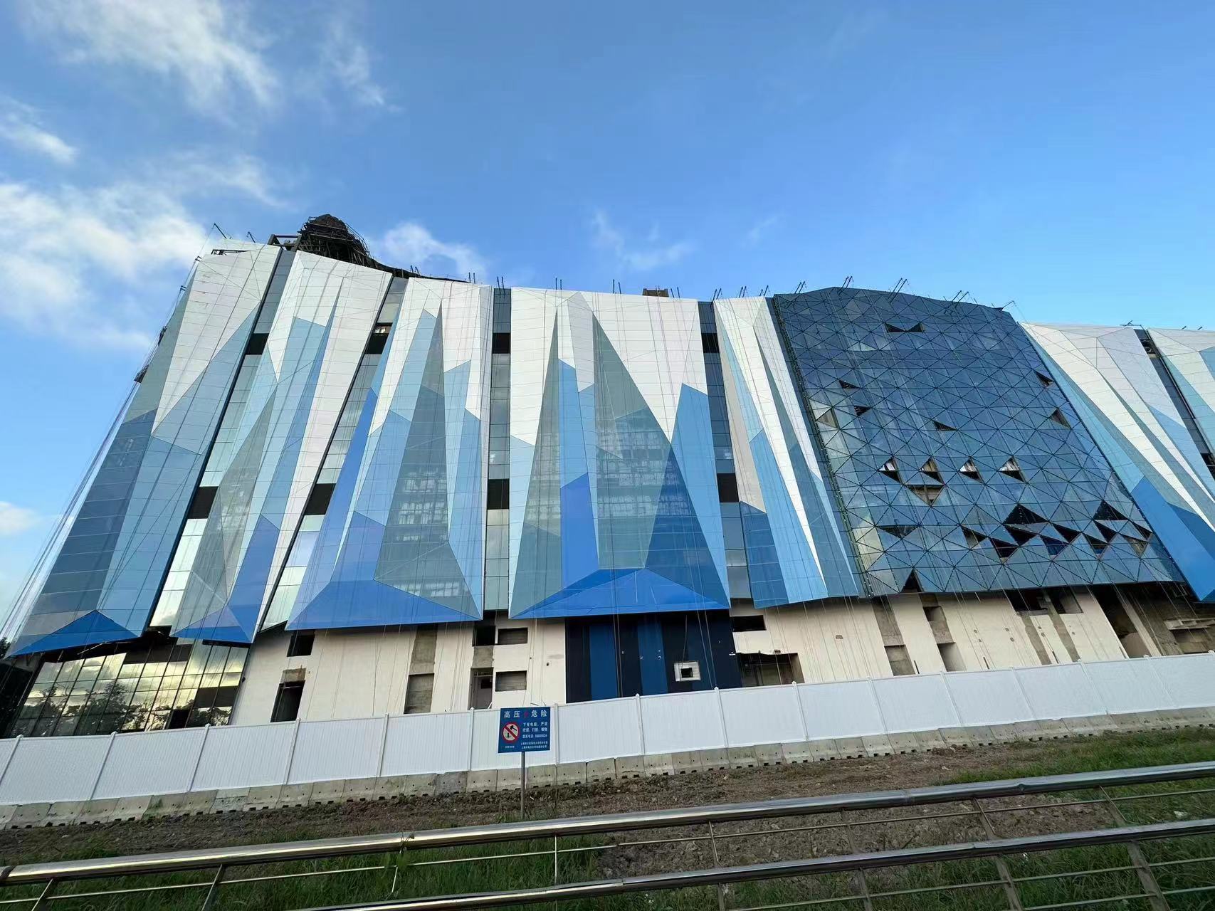 雅泰集團承建上海臨港冰雪北區(qū)幕墻整體制作及建設(shè),本項目為菠蘿面異形設(shè)計,充滿現(xiàn)代感的外立面,把冰雪世界的晶瑩閃耀充分展現(xiàn)。與之相匹配的鋁幕墻板的結(jié)構(gòu)復(fù)雜,加工難度較大,全異型、超大、超寬、超長鋁板,多數(shù)板長6-7米,且角度尖銳精度要求非常嚴(yán)格。面對高難度重點工程,雅泰集團快速成立項目攻艱突擊隊,選調(diào)管理、設(shè)計、加工精英,結(jié)合理解冰雪項目設(shè)計特點,最大程度達成設(shè)計師初衷。加工團隊對異型板件進行優(yōu)化拆解,分件加工,再進行一體化工廠組裝集成。同時集團擁有行業(yè)內(nèi)體量、規(guī)模均在前列,全長700米的進口先進噴涂設(shè)備,充分滿足超大、超長、超寬鋁板的氟碳漆面噴涂完成。