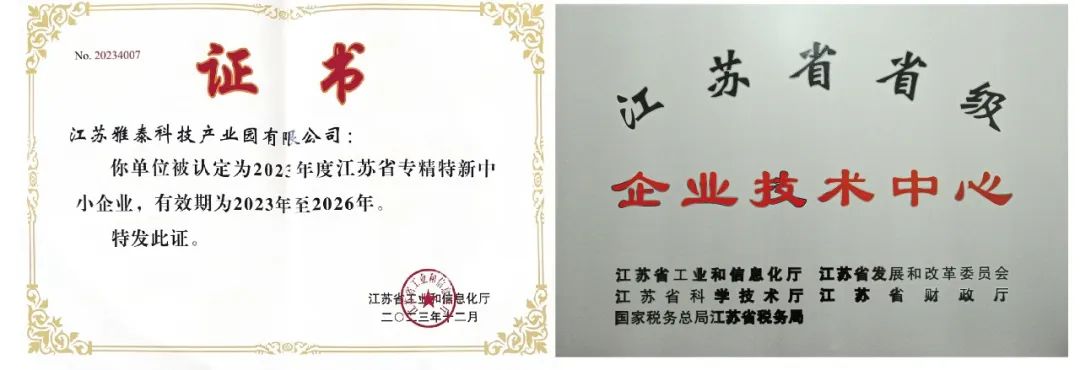 江蘇雅泰喜獲“江蘇省專精特新”、“江蘇省企業(yè)技術(shù)中心”兩項(xiàng)省級資質(zhì)榮譽(yù),標(biāo)志著江蘇雅泰科學(xué)管理體系、技術(shù)研發(fā)能力邁上了更高的臺階!