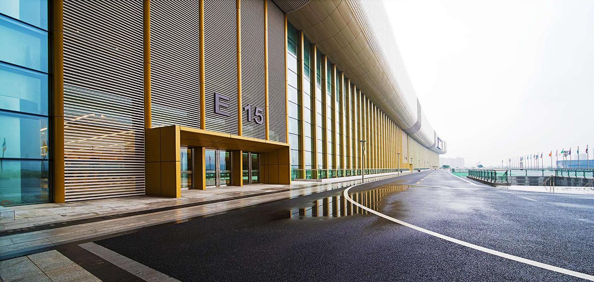 杭州國際博覽中心位于杭州市蕭山區(qū)錢江世紀城,是二十國集團領(lǐng)導(dǎo)人第十一次峰會的主場館,其作為浙江省重點項目規(guī)劃建筑面積84萬平方米,設(shè)有展覽中心、會議中心、綜合物業(yè)、屋頂花園(城市客廳)、地下商業(yè)及車庫等五大功能區(qū)。展覽中心設(shè)計國際標準展位7500個(其中1000個為室外展位);會議中心能滿足舉辦APEC、達沃斯等高規(guī)格的國際會議;規(guī)模6萬平方的屋頂花園結(jié)合城市客廳既能滿足高規(guī)格接見、高標準宴會、高檔次精品展的需要,城市客廳與錢塘江對岸的“城市陽臺”遙相呼應(yīng),形成一個新的城市亮點。